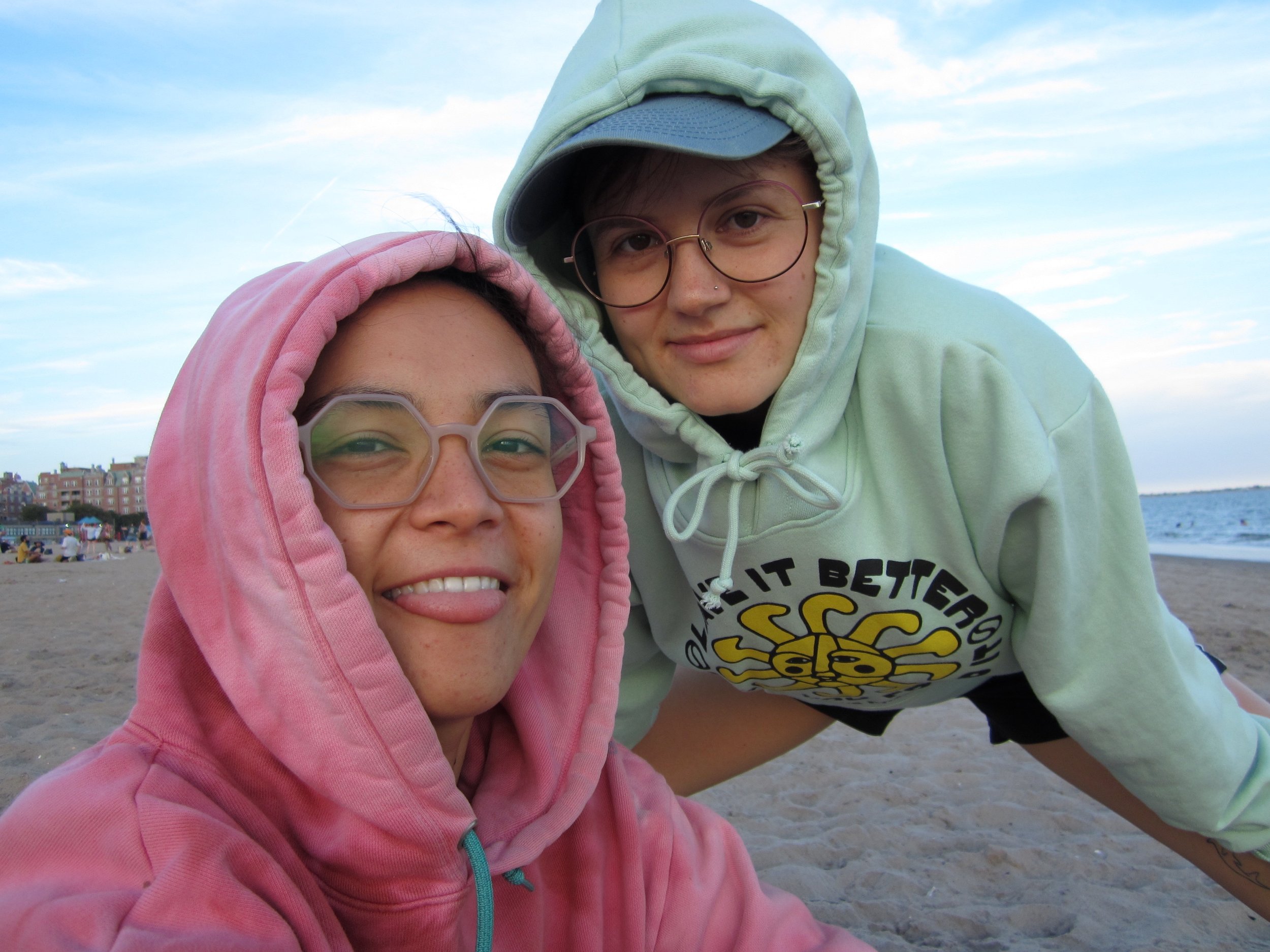 Independent queer duo and couple Outer Shapes formed during the pandemic, consisting of lead singer and bassist Laura Shkouratoff and guitarist and drummer C Santos. They began doing live shows in 2023 and quickly became known for our high energy live set, complete with costumes and both of them playing multiple instruments. They’ve played 23 shows in NYC in 2023 and plan to play even more this year. The bands motto is "feel all your feelings," and our music seeks to paint the full complexity and depth of emotion.