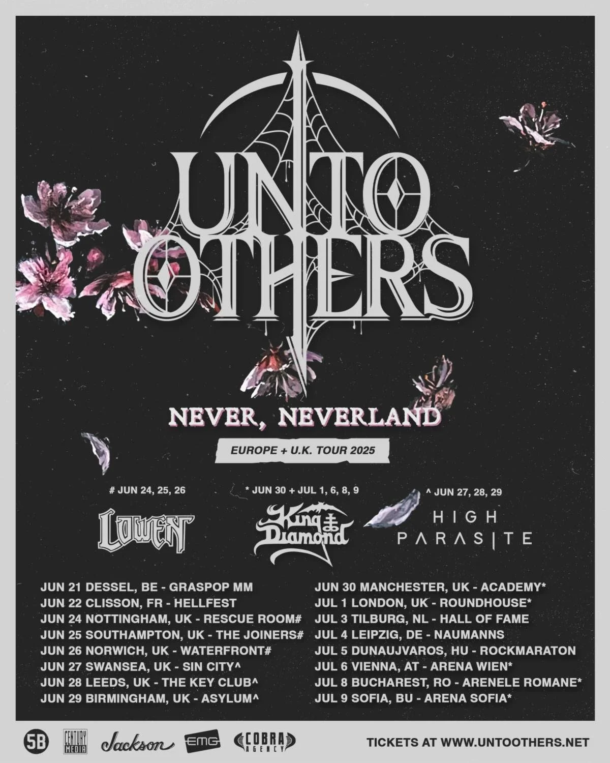 Portland, Oregon's UNTO OTHERS have shared details of their upcoming UK and EU run, including six headline dates and two supporting King Diamond and Paradise Lost throughout the UK. Taking them through Nottingham, Southampton, Norwich, Swansea, Leeds, Birmingham, Manchester, and culminating at London's historic Roundhouse, UNTO OTHERS' set list will include a range of their gothic cult classics plus stunning new tracks from their third full-length release, Never, Neverland, out now via Century Media.
